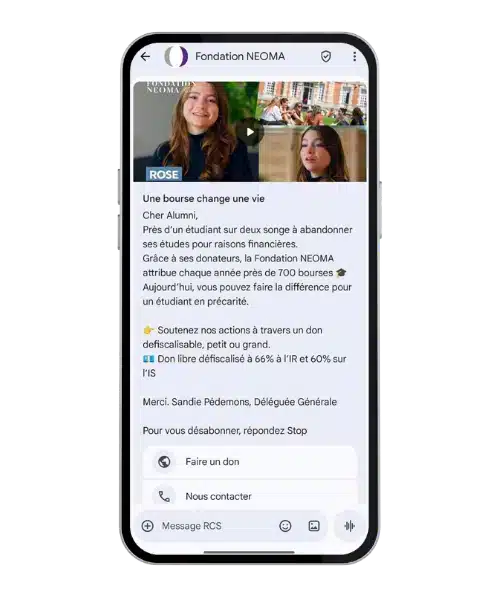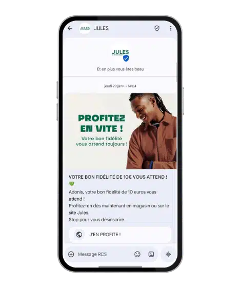 Grâce à ses formats enrichis (boutons cliquables, carrousels produits, visuels immersifs), le RCS facilite le passage à l’action directement depuis le message. L’utilisateur peut interagir instantanément sans quitter la conversation : acheter un produit, réserver un service ou accéder à une offre en un clic. Cette réduction des frictions dans le parcours client contribue à augmenter les taux de conversion et à accélérer la prise de décision.